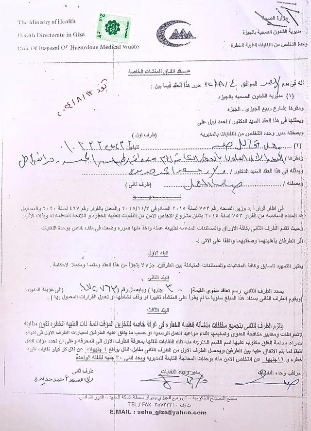 Certificate from the Hazardous Waste Management Department of the Ministry of Health
